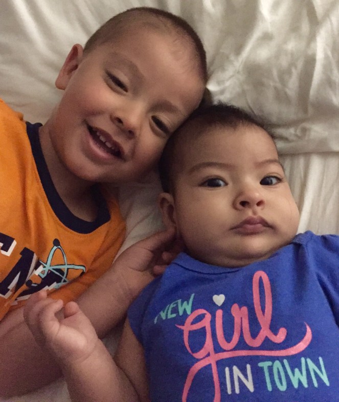 He greets his sister with kisses and hugs every morning, after his nap, and won’t go to bed without giving her a good night kiss. He likes to sit in the chair with us when I nurse and rock Talia, and he kisses the top of her head. His love for her also moves him to wake her from every nap because he misses her so; here’s hoping he learns to live without her during naps soon. If I get any wish granted in my life, it’s that they continue to love each other as they do now.