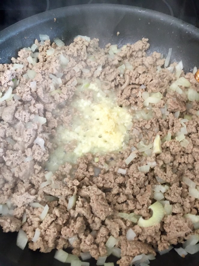 Add the minced garlic gloves, allow to brown about 30 seconds.
